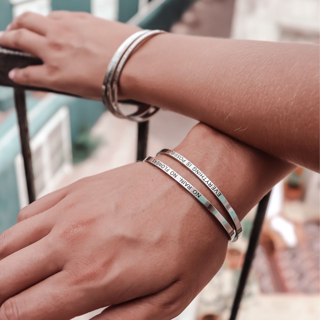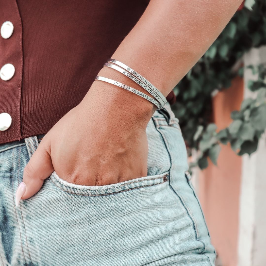Bracelet inspirational quotes (1 pcs) - silver | different texts